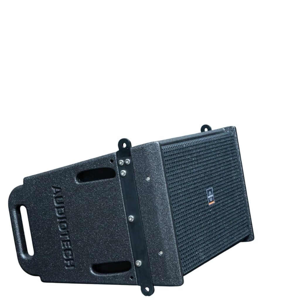 The Audiotech AH10L is a professional 2-way full-range speaker system engineered for reliability and high-performance sound. Featuring a 10-inch LF driver with a 75.5mm voice coil and a 1-inch throat dual 34mm HF driver, it delivers powerful and clear audio across a frequency range of 65Hz to 18kHz with a sensitivity of 96dB. With a power handling capacity of 300W AES/RMS and up to 1200W peak, it achieves a calculated maximum SPL of 126.5dB, making it suitable for demanding live sound and installation applications. The speaker provides a nominal coverage angle of 90° horizontal and 10° vertical, ensuring balanced sound projection. Built from durable plywood with a water-resistant, dark black coating, it includes HA-series integrated rigging hardware, a powder-coated perforated steel grille, and black ester foam filtering for protection. Connectivity is provided through dual NL4 Speakon connectors, supporting passive or bi-amplified powering. Measuring 315 x 520 x 407mm and weighing 22kg net, the AH10L combines rugged construction with superior sound quality, ideal for professional use in various venues.